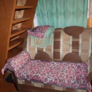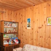 На первом этаже веранда-кухня и жилая комната. Комната отделана вагонкой, пол-доска.