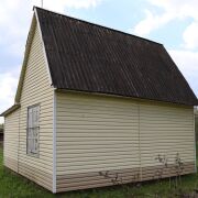 Дом каркасно-щитовой, обшит сайдингом. Крыша-шифер. Входная дверь металлическая.