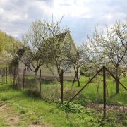 Участок огорожен сеткой рабицей.