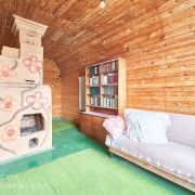 2-й уровень состоит из кухни, двух жилых комнат и деревенской печи.