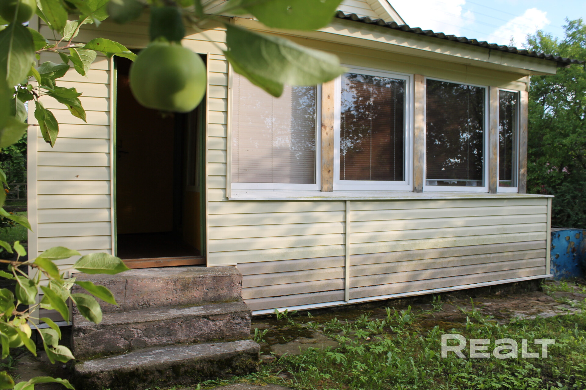 Дом одноэтажный. Кирпичный, обложен польским долговечным сайдингом. Окна современные ПВХ стеклопакеты, изнутри алюминиевые жалюзи. Крыша шифер. В доме тамбур, кухня с холодильником, плитой и комната на 2 спальных места с мебелью.