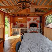 Двухуровневый дом. На 1 этаже большая гостиная с камином, на втором 2 спальни.