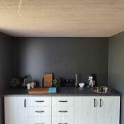Пол ламинат, стены ОСП + ламинированная ДСП, потолок-ламинированная ДСП.