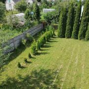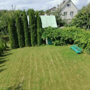 Дом с отличным ухоженным квадратным участком: стена из красавиц - туй, плодоносящий виноградник а также другие садовые деревья и кустарники, бетонные дорожки, ровные газоны.