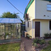 Земельный участок площадью 4,12 сотки, в частной собственности. На территории участка находится отдельно стоящая летняя кухня с мансардой и две капитальные теплицы из стекла+поликарбонат.