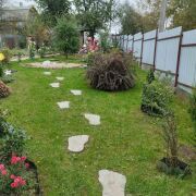 В обустройство участка вложено много сил, разработаны грядки, высажены туи, яблони, виноград, вишни, сливы. Маленький пруд, беседка, стационарный мангал.