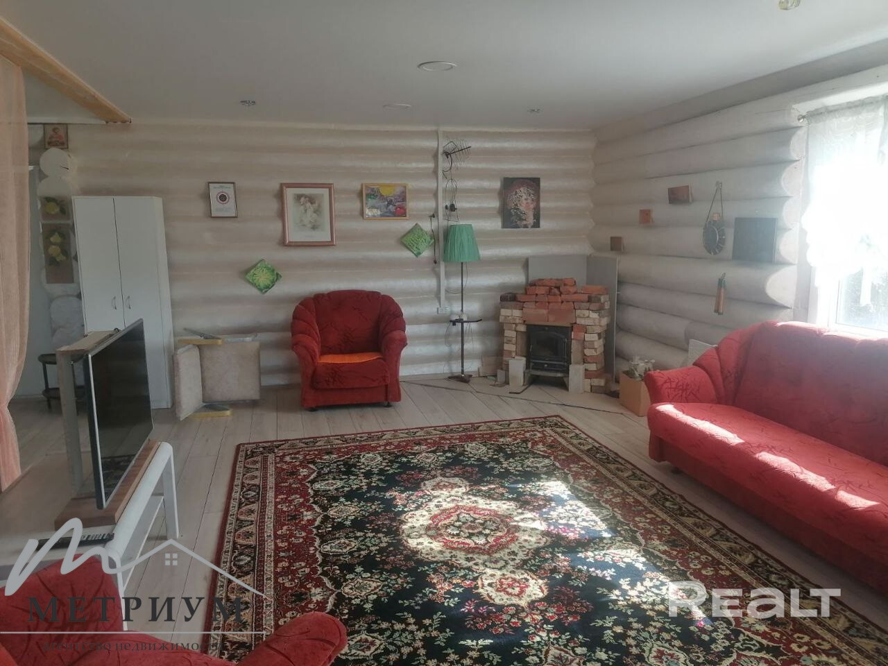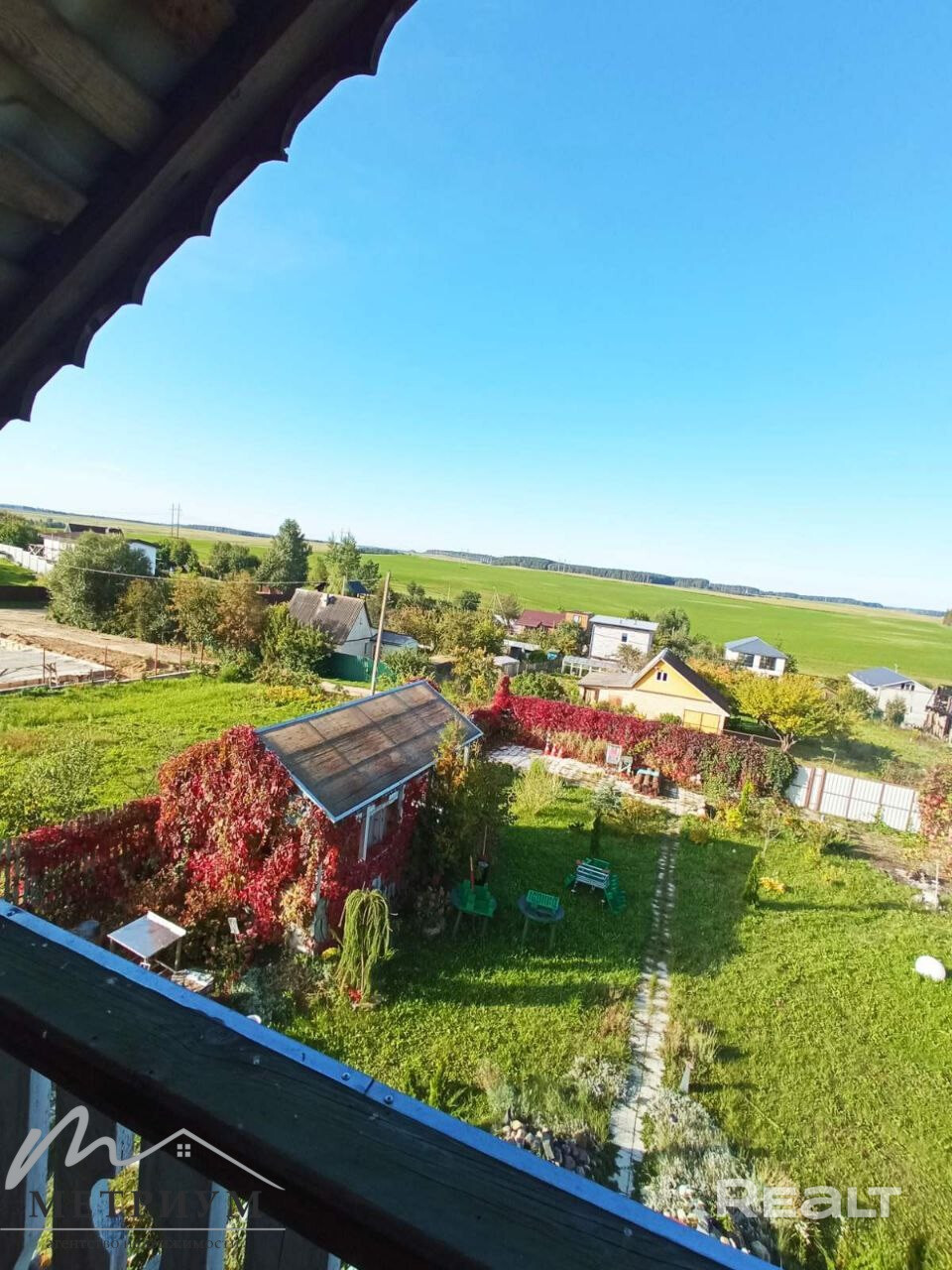 Деревянный дом из цельного кругляка ель сосна, с жилым отапливаемым мансардным этажем 8 на 9 м, с пристройкой,терасса,окна ПВХ,крыша металочерепица,отопление электрическое и камин,вода всезезонная(скважина),бойлер 80л,беседка,забор(металический профиль деревяный)!!!! Молодой сосонник справа,а за полем в лес ходят за ягодами и грибами.За лесом озеро Задомля,можно и купаться и рыбачить,около 4 км,вдоль леса есть прямая дорога.