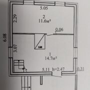 Дом имеет следующие зоны: подвальное помещение (наружный метраж 6,08 на 5,67 м.), жилое помещение (внутренний размер – 5,05 на 5,36 м.), чердачное помещение. В жилом помещении 2 комнаты: 11,6 кв.м и 14,7 кв.м. Одна из комнат проходная. Печное отопление. В дом введена вода (из скважины). Имеется потенциальная возможность сделать жилым чердачное помещение.