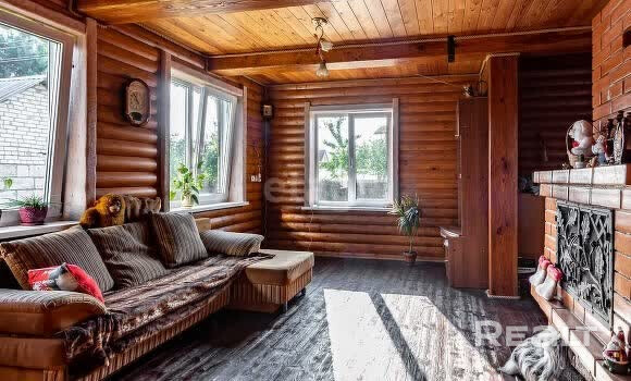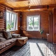 - Дом бревенчатый, обшит вагонкой. Внутри имитация бруса (блок-хаус ).