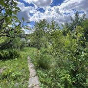 Благодаря уклону на участке открывается прекрасный вид. Выполнено террасирование участка. Много плодово-ягодных насаждений.