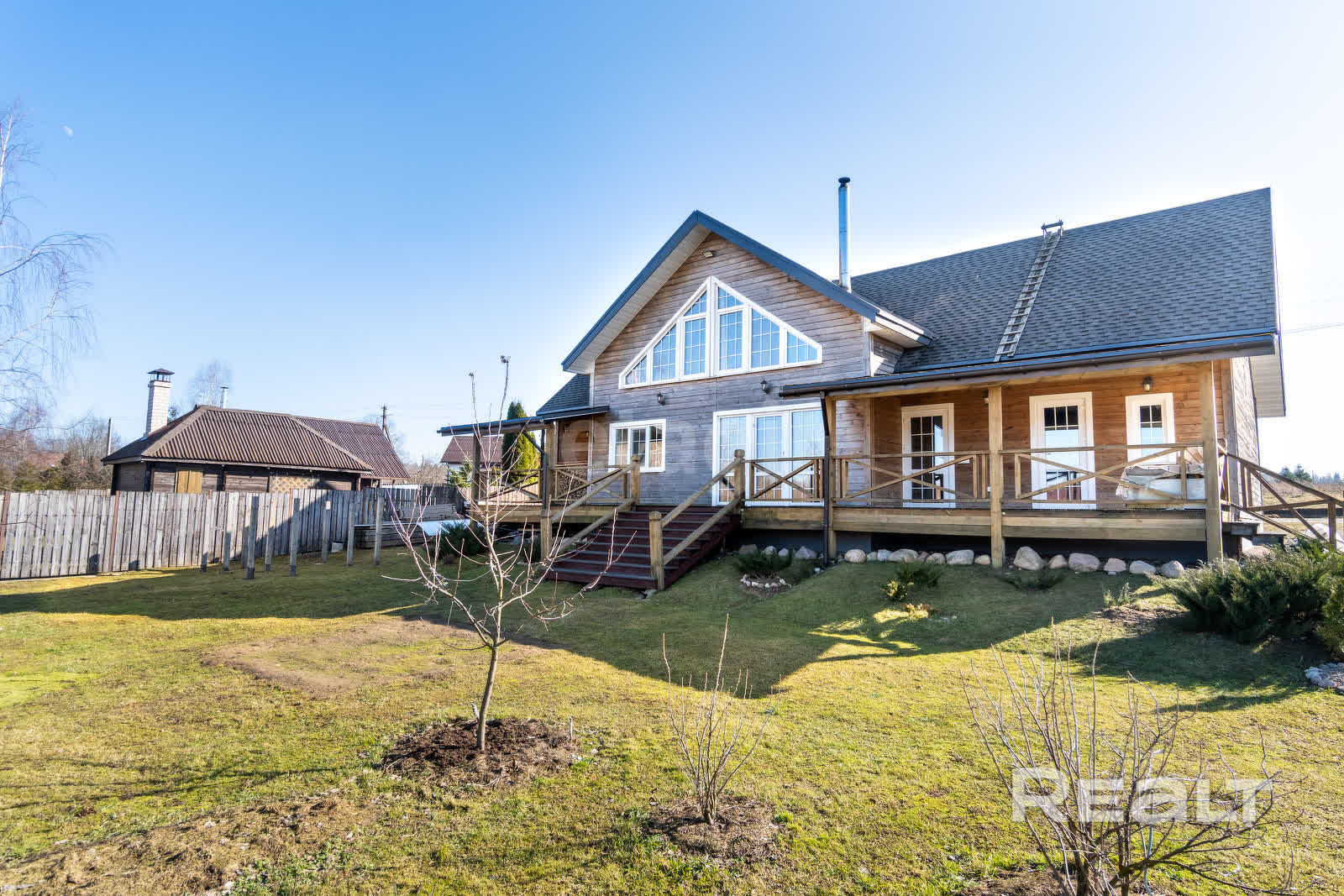 Гармоничное сочетание дома с ландшафтным дизайном участка (высажены декоративные растения, газон, плодовые деревья и кустарники). Рядом лес - идеальное место для вечерних прогулок или утренних пробежек.