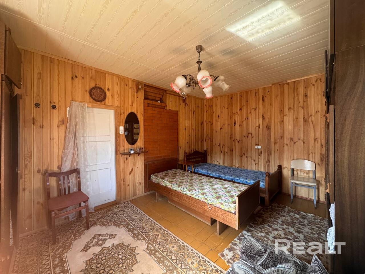 Дача под Минском СТ «Трактор». Продается дача в садовом товариществе «Трактор», 2 км от аг. Колодищи. 10 км от МКАД. Московское направление. 10 минут пешком от станции электропоездов «Садовый». Дом одноэтажный с полноценной мансардой. На первом этаже кухня и спальня. На втором этаже расположена спальня по всему периметру дома. Стены внутри дома обшиты вагонкой. Все окна ПВХ. Крыша шифер. Вода заведена в дом. Газ - баллон. Печь из красного кирпича. 2 погреба для хранения запасов на зиму.