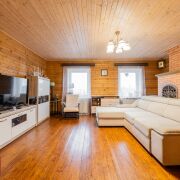 В доме установлена скважина для воды, отопление осуществляется печное и электрическое, имеется интернет, а также установлены датчики для обеспечения безопасности. Планировка дома включает две спальни, просторную гостиную с камином, кухню и санузел. Из застекленной веранды открывается восхитительный вид. На цокольном этаже находятся кладовка, погреб, техническое помещение для установки котла, а также комната для отдыха с бильярдом.