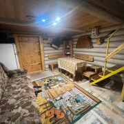 Баня из бруса. Теплые полы. Большая комната отдыха на первом этаже и комната для гостей на втором этаже.