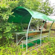 На участке установлен парник. Имеется хозпостройка для хранения дров.