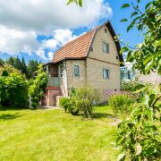 Дача состоит из 3-х уровней. Цокольный этаж с гаражом, душем (установлен бойлер для подогрева воды) и подсобным помещением для хранения. Два жилых этажа. На первом этаже просторная веранда/кухня (вода введена), проходная комната с печкой и большая жилая комната с камином. Второй этаж мансардный. Санузел на улице.