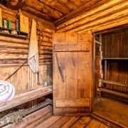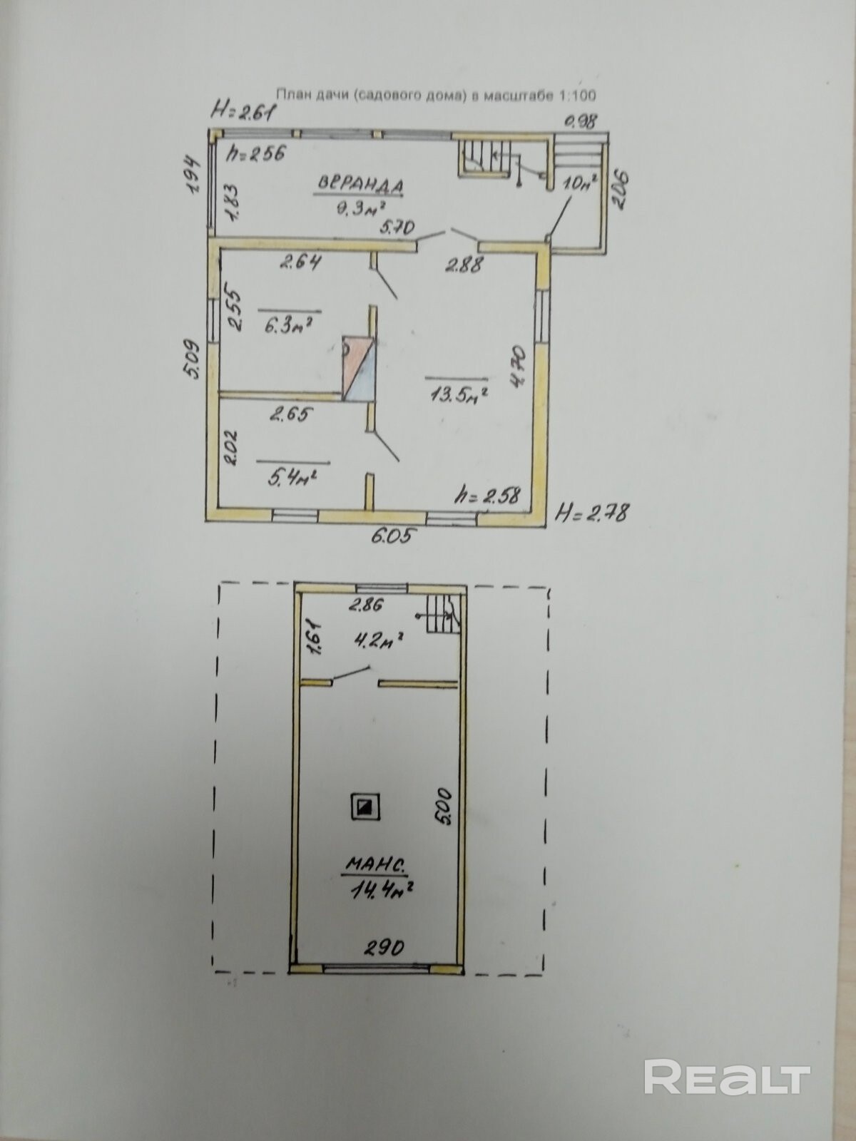 Дом из сруба , внутри обшит вагонкой. На первом этаже веранда и три жилые комнаты. На втором этаже одна жилая комната.