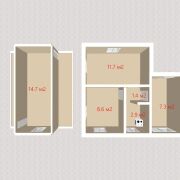 Дом сборно-щитовой, обложен кирпичом. Дачу начали реконструировать. Сделали развод труб под канализацию и воду. Вода заведена в дом. Пробита скважина глубиной 49 метров. Общая площадь домика 46.6 кв.м. Электричество заведено в дом.