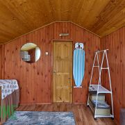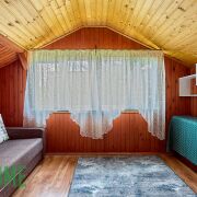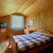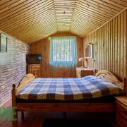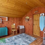 Первый этаж - 2 комнаты, кухня, камин, второй этаж - 2 комнаты.