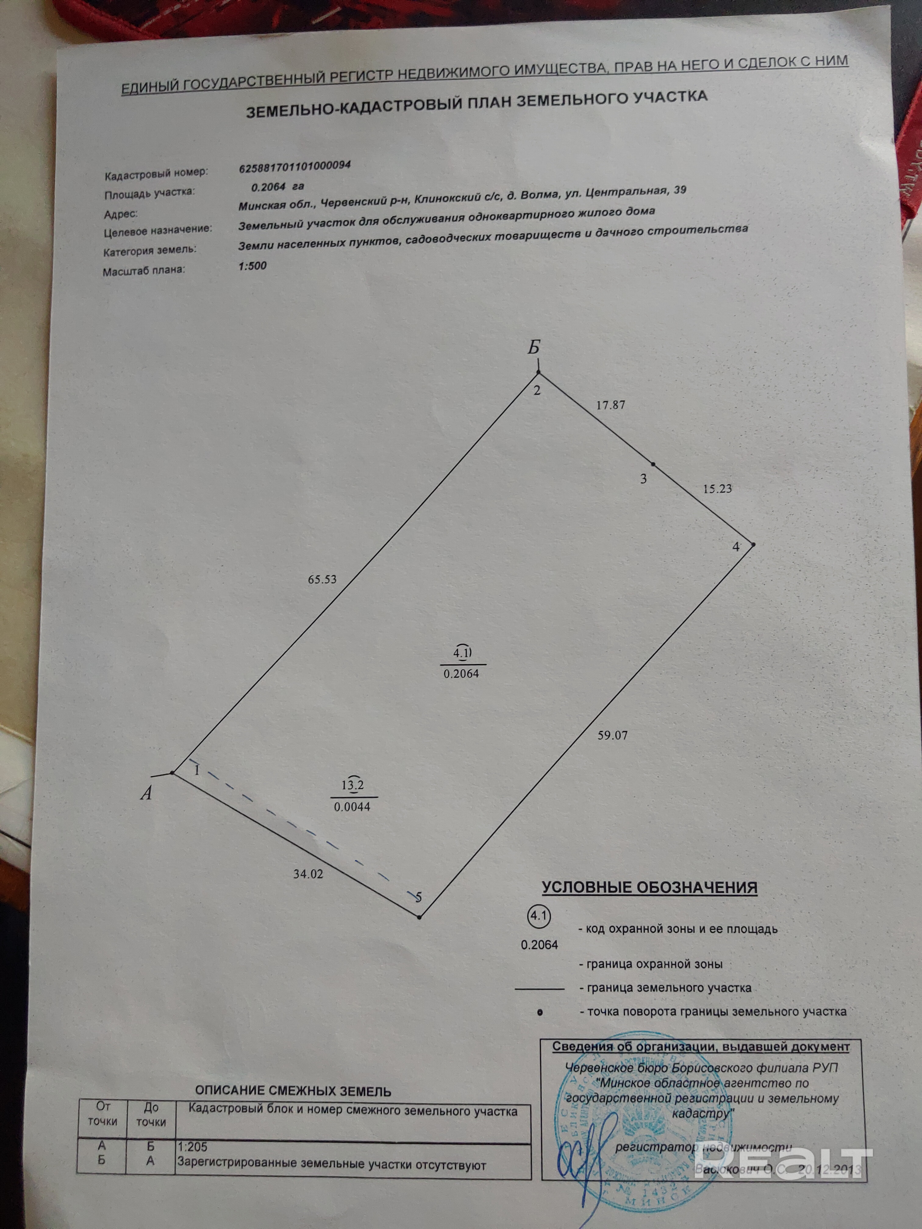 - Площадь участка