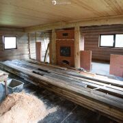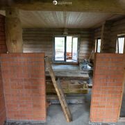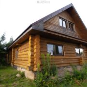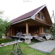 Сам дом из бревна 28-32см готовностью 70%. По проекту первый этаж – кухня-гостиная, две спальни, большой санузел, прихожая. На мансардном этаже несколько спален. Окна вставлены, электричество введено в дом. Установлена печь-камин. Потолок кухни-гостиной подшит. Есть выводы для коммуникаций (вода, канализация). Выход на террасу – панорамные окна. Крыша ондулин, кровельные свесы и потолок террасы подшиты. На террасе уложен деревянный пол. Частично выполнены межкомнатные перегородки. Вода сезонная. Требуется выполнить установку септика и бурение скважины (для круглогодичного использования воды). На участке въездная зона – уложена тротуарная плитка и дорожка до дома.