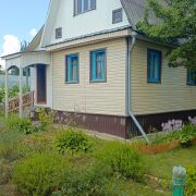Дом сложен из газосиликатных блоков, снаружи обшит сайдингом. Внутренняя отделка комнат выполнена вагонкой. Вся мебель в доме остаётся новым хозяевам.
