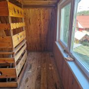 Дом крепкий в хорошем состоянии. Сруб 4*5. Дерево обложено страпилой и обшито рефленой вагонкой.