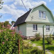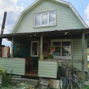 Дом 6*8 обшит сайдингом. В доме на первом этаже беседка с зоной барбекю, кухня, три жилые комнаты. На втором этаже холл и две жилые комнаты. В доме остается практически вся мебель.