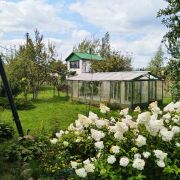На участке через дорогу расположена блочная постройка. В нее входит гараж, баня, сарай и на втором этаже комната отдыха под биллиардную. На первом и втором участке стоят поликарбонатовые теплицы. Озеро прямо через дорогу от участка. Не далеко есть продуктовый магазин. Рядом грибной лес. До станции электрички Веселовский 5 минут ходьбы.