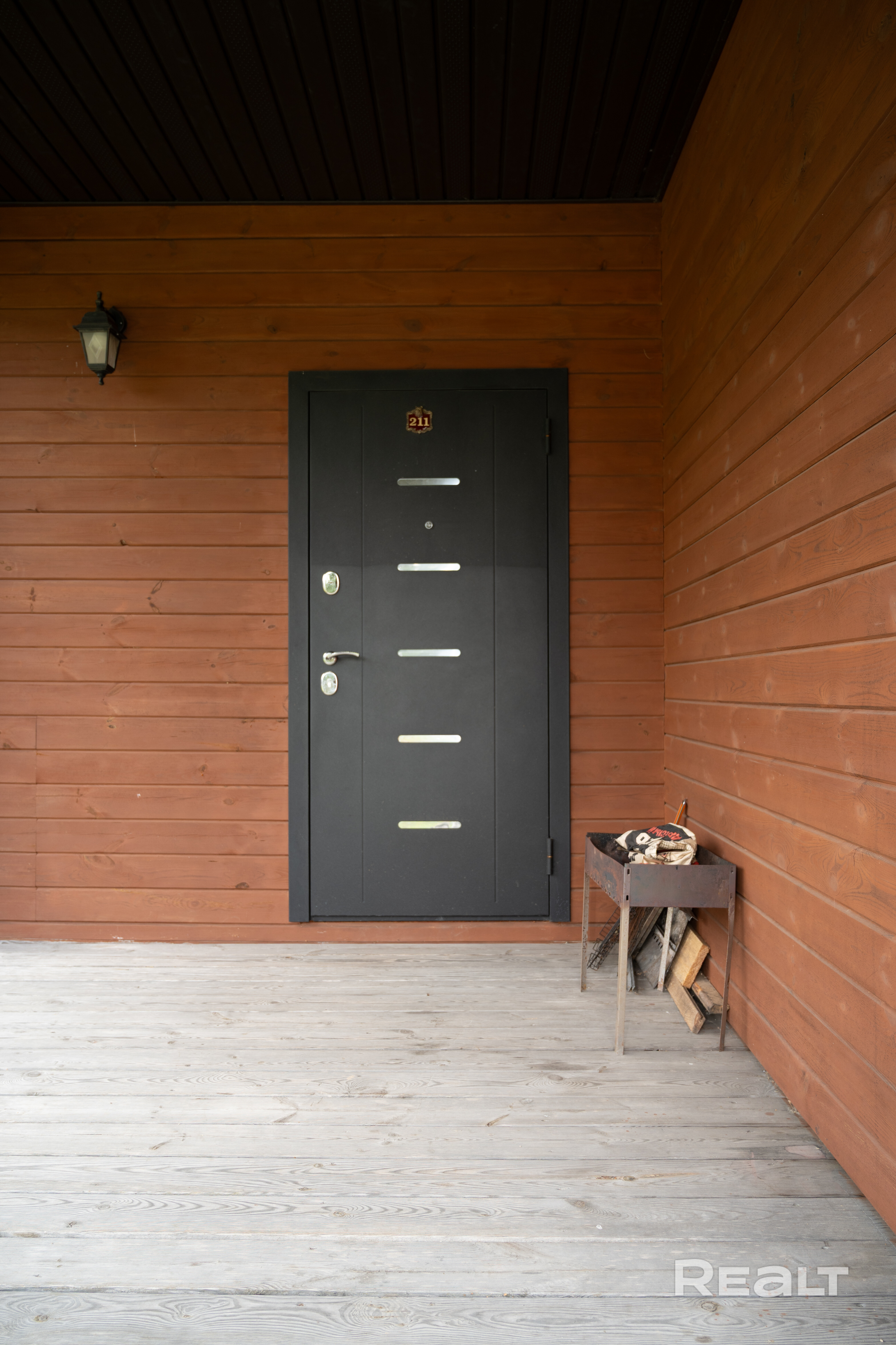 При входе в дом сделана небольшая терраса. Электричество в доме и на участке на 220 и 380 V, скрытая проводка, есть спутниковая ТВ антенна.