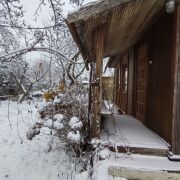 Дом - экологически чистый, полностью выстроен из дерева - деревянный сруб, снаружи и внутри обшит деревянной доской. Оригинальный авторский проект и дизайн. В доме дышится легко, зимой - тепло, а жарким летом - прохладно. Отопление - печное, есть камин. Вода центральная сезонная, санузел на улице. Дом уютный, с неповторимой атмосферой, располагающей к отдыху и комфортному проживанию.
