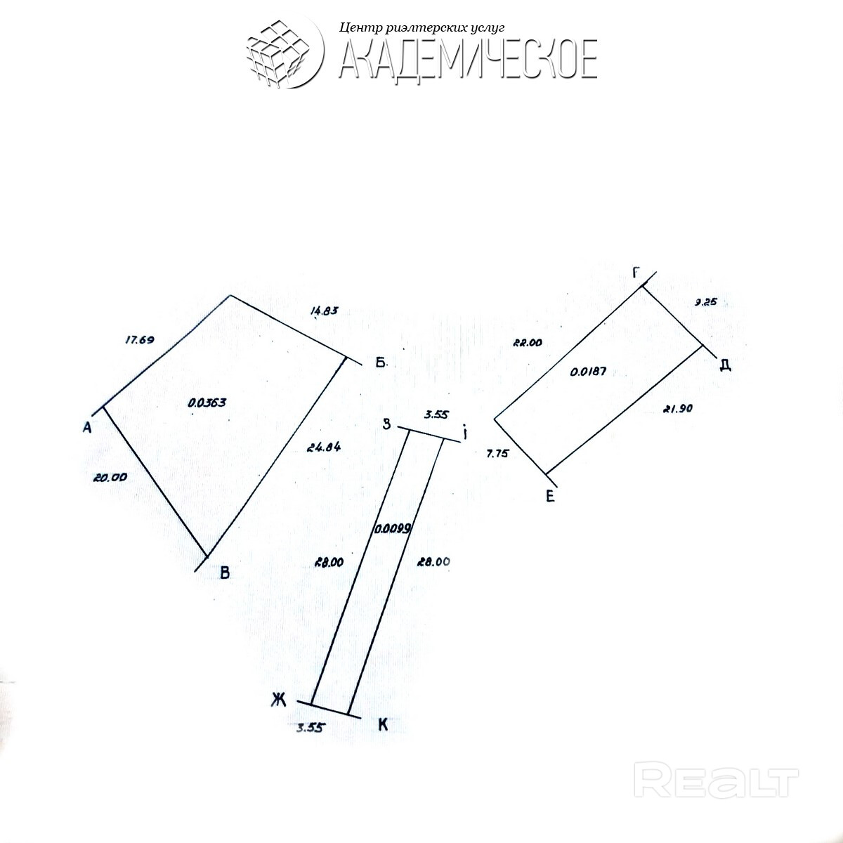 Три земельных участка 0,0649 га (0,0363 га + 0,0187 + 0,0099 га) в частной собственности.