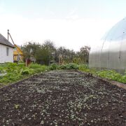 На участке взрослый плодоносящий сад, установлена новая теплица, разбиты грядки, земля постоянно обрабатывается.
