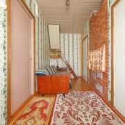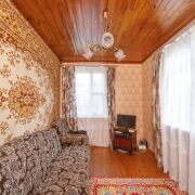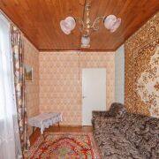Планировка дома: две жилые комнаты 10,6 кв.м. и 10,4 кв.м., проходная комната 9,6 кв.м., входная группа 7,6 кв.м., открытая верандочка 1,6 кв.м. Высота потолков 2,47 м.
