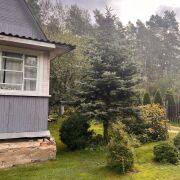 Участок 4 сотки, ровный и ухоженный, граничит с лесом. На участке есть хвойные деревья и парник. Асфальт практически до самого товарищества.