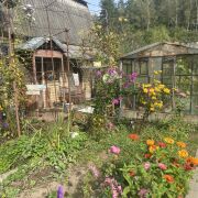 На ухоженном с любовью огороде нашлось место всему: плодовым деревьям с кустарниками, винограднику, грядкам с зеленью и овощами, двум просторным теплицам и, конечно, повсюду множество цветов-красота!