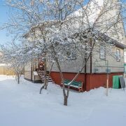 Дом бревенчатый, крепкий и надежный на высоком фундаменте. Перекрытия между цокольным и первым этажами – бетонные плиты. Установлены стеклопакеты.