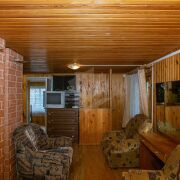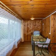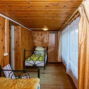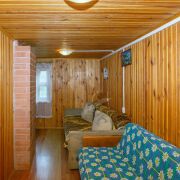 На полу уложен ламинат, линолеум, стены обшиты вагонкой, окна деревянные и ПВХ.