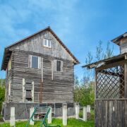 2 – Двухэтажный дом: площадь 8*10 метров, фундамент ФБС, высота 2,4 метра, 2 этажа, чердак, погреб, гараж. Выполнен из сруба, установлены перекрытия, частично поменяны окна ПВХ, имеется полный комплект окон на весь дом.