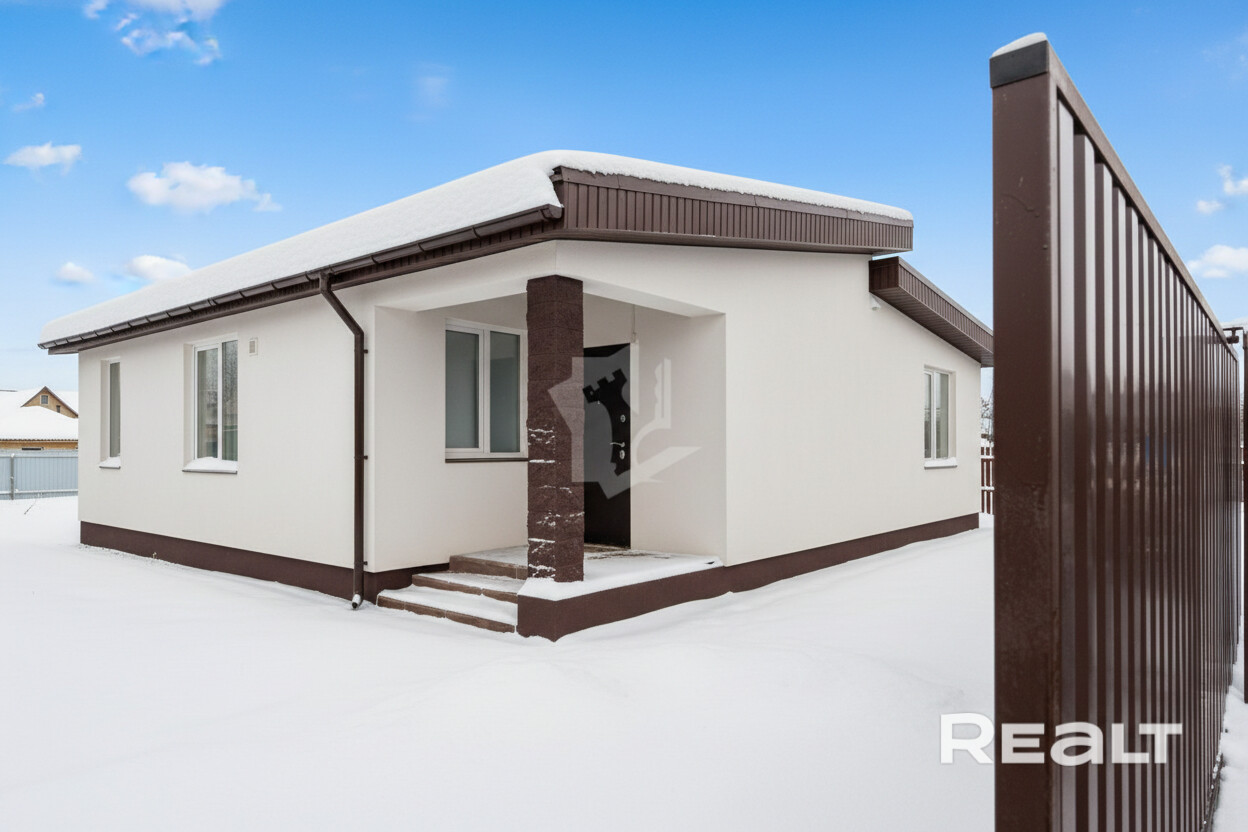 Дом построен из газосиликатных блоков (год постройки 2025), утеплён, оштукатурен, покрашен. Вставлены двойные стеклопакеты, крыша - металлочерепица.