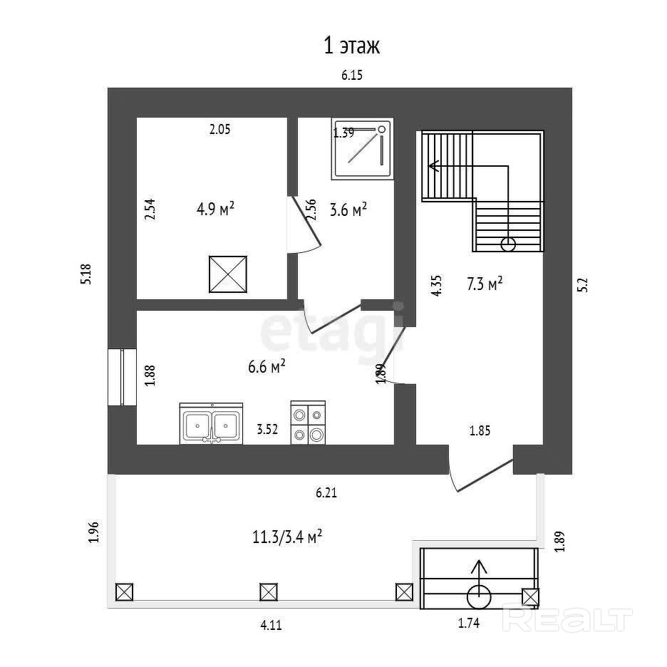 2 этаж. Большая уютная комната отдыха 17.3 кв.м2. Кухня 6.6 кв.м2.