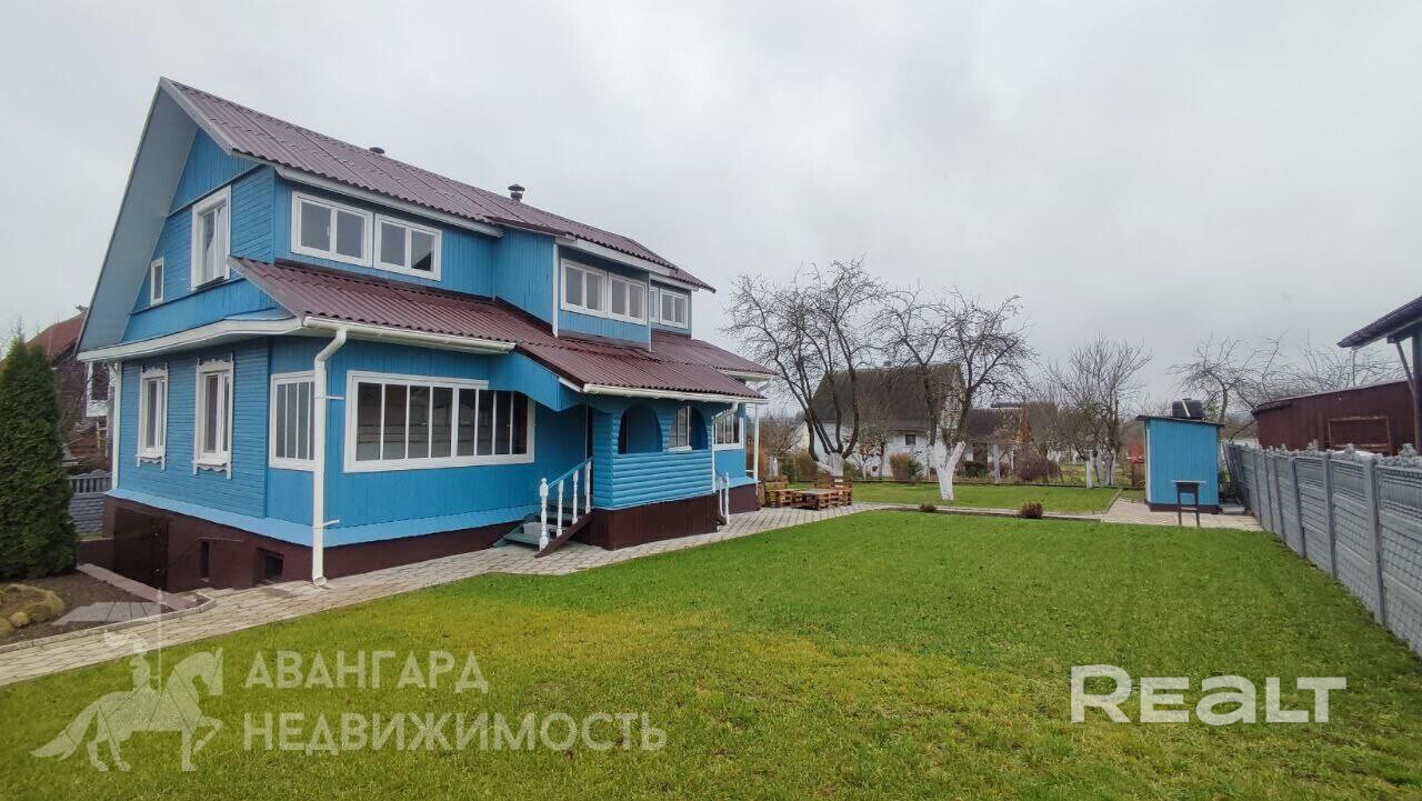 Продается добротный дом из рубленного бруса в товариществе «Лазурное» в двух километрах от города Дзержинска. Дом с цокольным этажом, и погребом. Построен из бруса, утеплен и обшит вагонкой. Окна ПВХ, окрашенный шифер, электричество 220В. (есть возможность сделать электроотопление) 2 функционирующие печки с годовым запасом дров и брикета. Дом строился для круглогодичного проживания. Сезонная вода заведена в подвал. Мансардный этаж без отопления. Красивый облагороженный участок площадью 6 соток. Дача находится в 38 км от МКАД по Брестскому направлению, туда легко и быстро добираться по высокоскоростной трассе М1. От съезда с трассы до садового товарищества ведёт ровная асфальтированная дорога, что обеспечивает удобный и безопасный подъезд в любое время года. От дачи до станции электрички всего 7-10 минут пешком, а поезда в Минск ходят практически каждый час. Добраться до дачи одинаково удобно как на машине, так и на общественном транспорте.