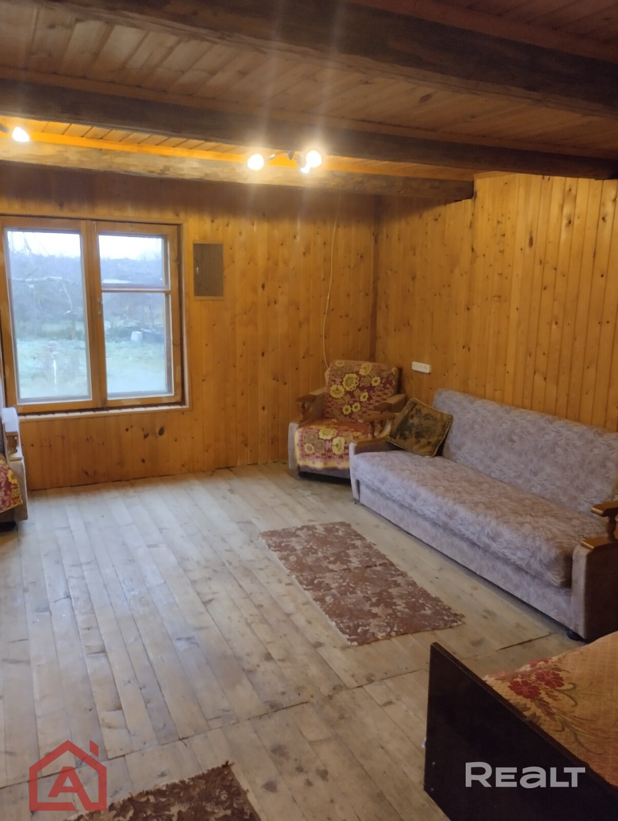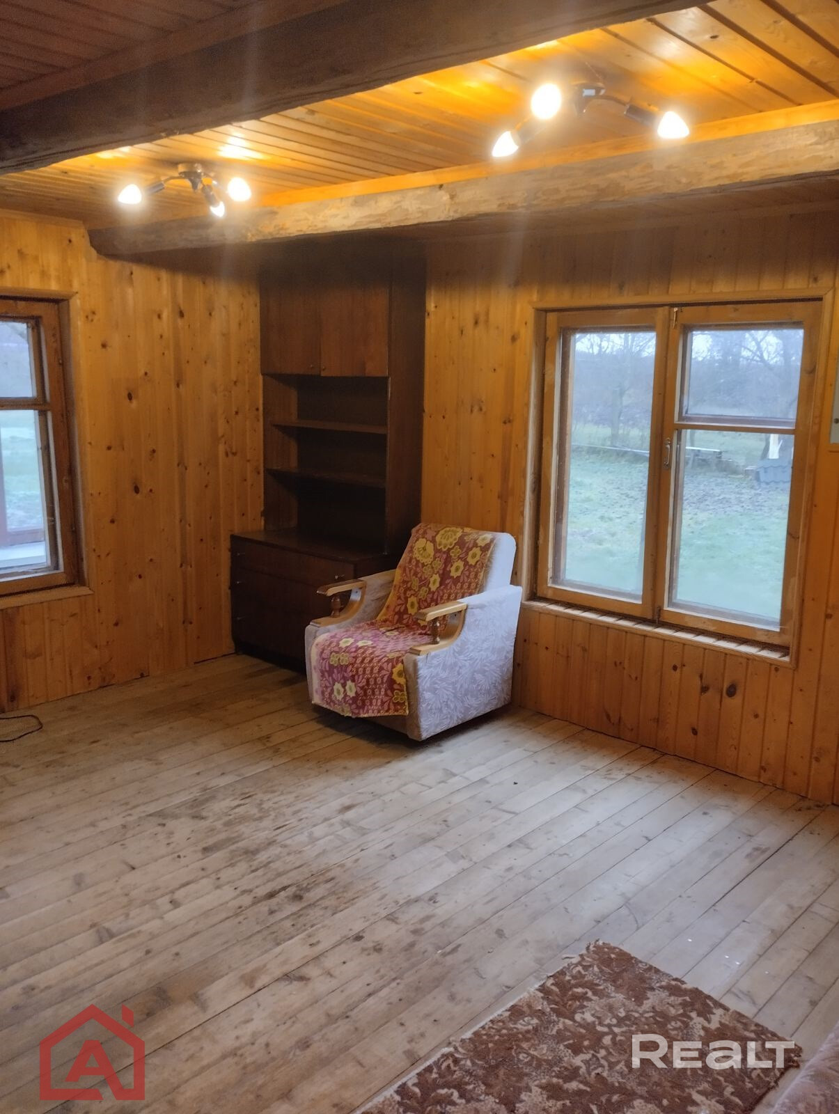 Стены сруб, окна деревянные, внутри обшит вагонкой. Крыша шифер.