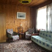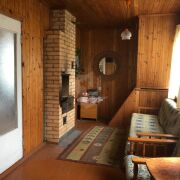 Дом кирпичный, внутри отделан натуральным деревом. В доме три комнаты, кухня. В комнате на втором этаже есть камин. В цокольном этаже расположен просторный гараж и большое хоз. помещение.