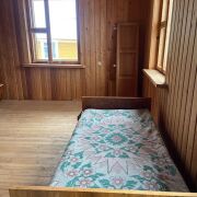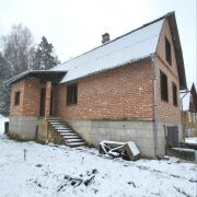 Дом двухэтажный, стены - бревно, обложен красным кирпичом, кровля покрыта шифером. Общая площадь 112,9 м2. Внутри дом обшит деревянной вагонкой. Имеется цокольный этаж. Отопление печное.