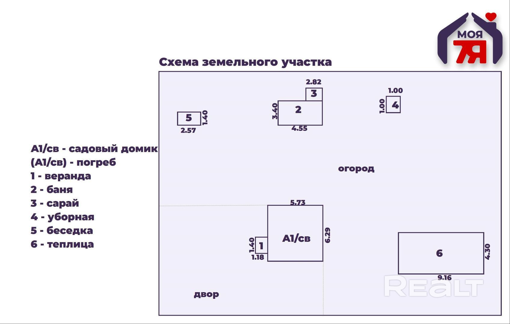 - Площадь участка
