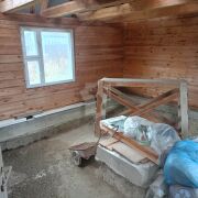 На участке расположен незавершенный строительством жилой дом из сруба дерева, прочный и тёплый, для постоянного проживания. Общая площадь дома по СНБ составляет 60.5 м2, с 2 комфортными жилыми комнатами.