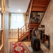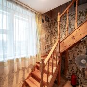Лестница крепкая из натурального дерева. Много мест для хранения- построены шкафы-купе.