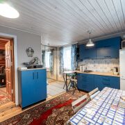 На первом этаже- вместительная гостиная, кухня, санузел.
