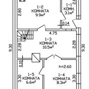 Размеры дома по периметру 1 этажа: 9,30 м *5,35 м.